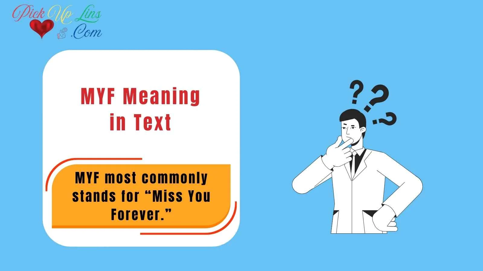 The acronym MYF most commonly stands for “Miss You Forever.” It’s a heartfelt abbreviation people use in text messages, DMs, or comments to express deep affection or longing for someone they miss.